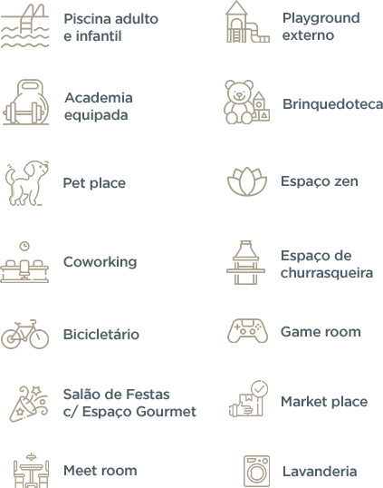 • Áreas sociais entregues equipadas e decoradas